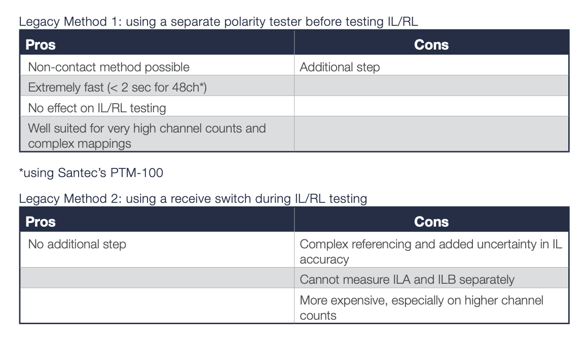 In the last decade, cable assembly manufacturers have mostly shifted towards using the light source power meter (LSPM) method to measure IL and optical time domain reflectometry (OTDR) to measure RL thanks to being “mandrel-free”. However, two different methods are still used for verifying polarity.