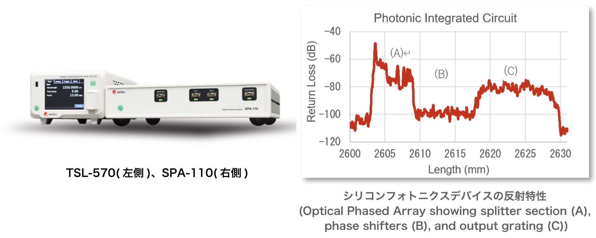 santec Holdings株式会社(本社 愛知県小牧市)は、OFDR(Optical Frequency Domain Reflectometry)技術を用いた波長掃引型フォトニクスアナライザ SPA-110(以下「本製品」といいます。)を開発しました。本製品は、santec波長可変レーザ(TSLシリーズ)のアドオンモジュールとして機能し、フォトニクスデバイス評価に要求される3つの機能(反射点計測、導波路伝搬損失計測、波長依存損失計測)を提供する分析装置です。測定距離を従来機(SPA-100)の6倍以上の30mまで拡大し、測定距離に余裕をもってご利用いただけるようなりました。また、損失測定ダイナミックレンジを従来機より10dB改善し80dBまで拡大したことで、より微弱な反射点も検出可能となっています。従来機と同じ5μmの高い位置分解能を備えており、シリコンフォトニクス及び小型フォトニクスデバイスの開発や生産など様々なアプリケーションで理想的なツールとなっています。