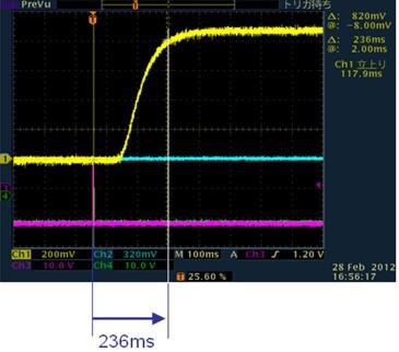 Our LCOS device shows typical τ = 236ms in fall-down time (90 % - 10 %) as shown in Figure 5.